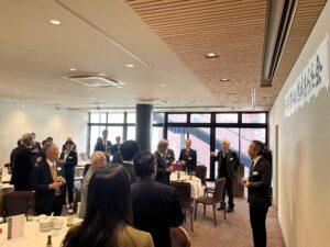演奏会後に記念撮影を行い懇親会となりました。今年度は摂南大学農学部の薮田伸氏(生 平19卒)が新たに参加され、出席者全員から近況報告をしていただきました。総会の最後には、田代善和氏(畜昭46卒)と太野垣賢治氏(工昭49卒)によるご発声で「鹿児島高等農林学校校歌」と「北辰斜めに」の大合唱となり、次年度には2026年5月31日(日)にホテルヴィスキオ尼崎で元気に再会することを確認して閉会となりました。その後、有志の方々は2次会へと向かいました。
