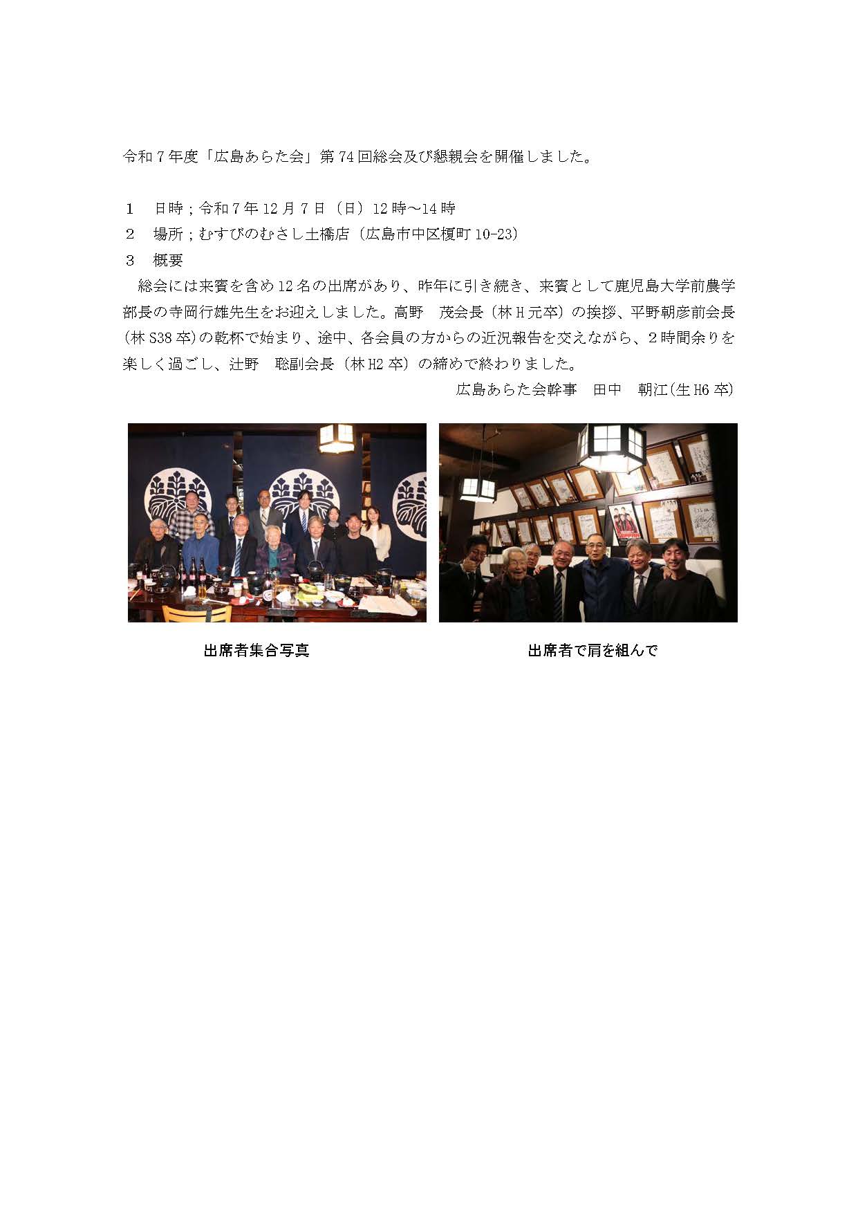 令和7年度「広島あらた会」第74回総会及び懇親会を開催しました。